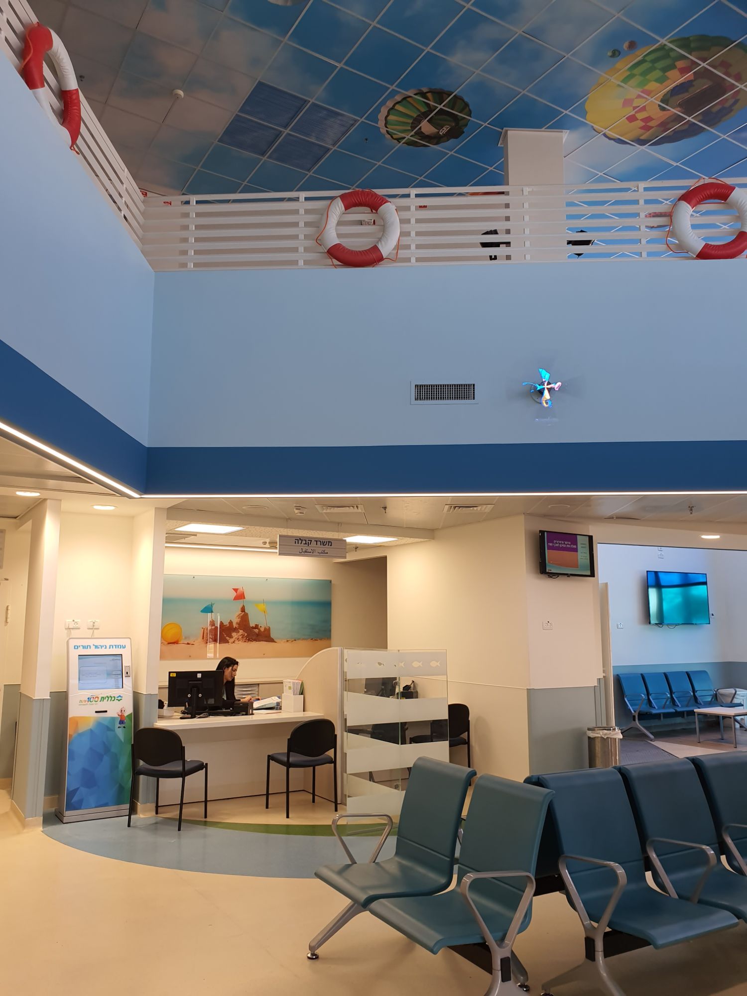שדרוג ועיצוב פנים של אזור הקבלה וההמתנה של המרכז לרפואה דחופה לילדים , גיבוש קונספט עיצובי המבוסס על נושא סיפורי, תכנון עיצוב אלמנטים בחלל הקיים, ליצירת סביבה עשירה מרגיעה ונעימה לילדים ולהוריהם,  כולל טיפול פרטני בעצוב החללים , הקירות , התקרות . עיצוב התאורה .טיפול פרטני בגימורים. כולל בחירת חומרי גמר וגוונים תוך שימוש בהדמיות. שילוב ותיאום כל המערכות האלקטרומכניות.